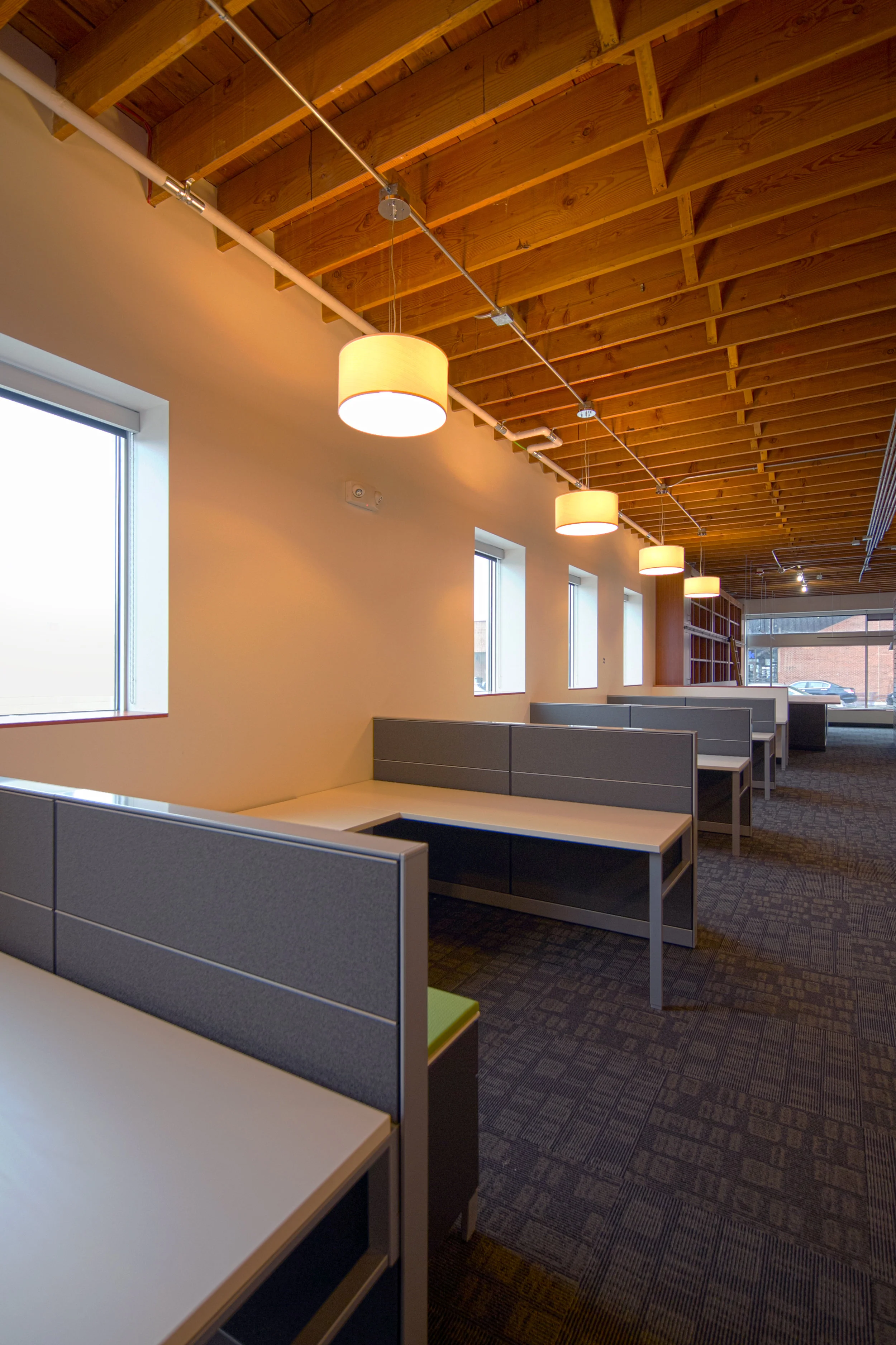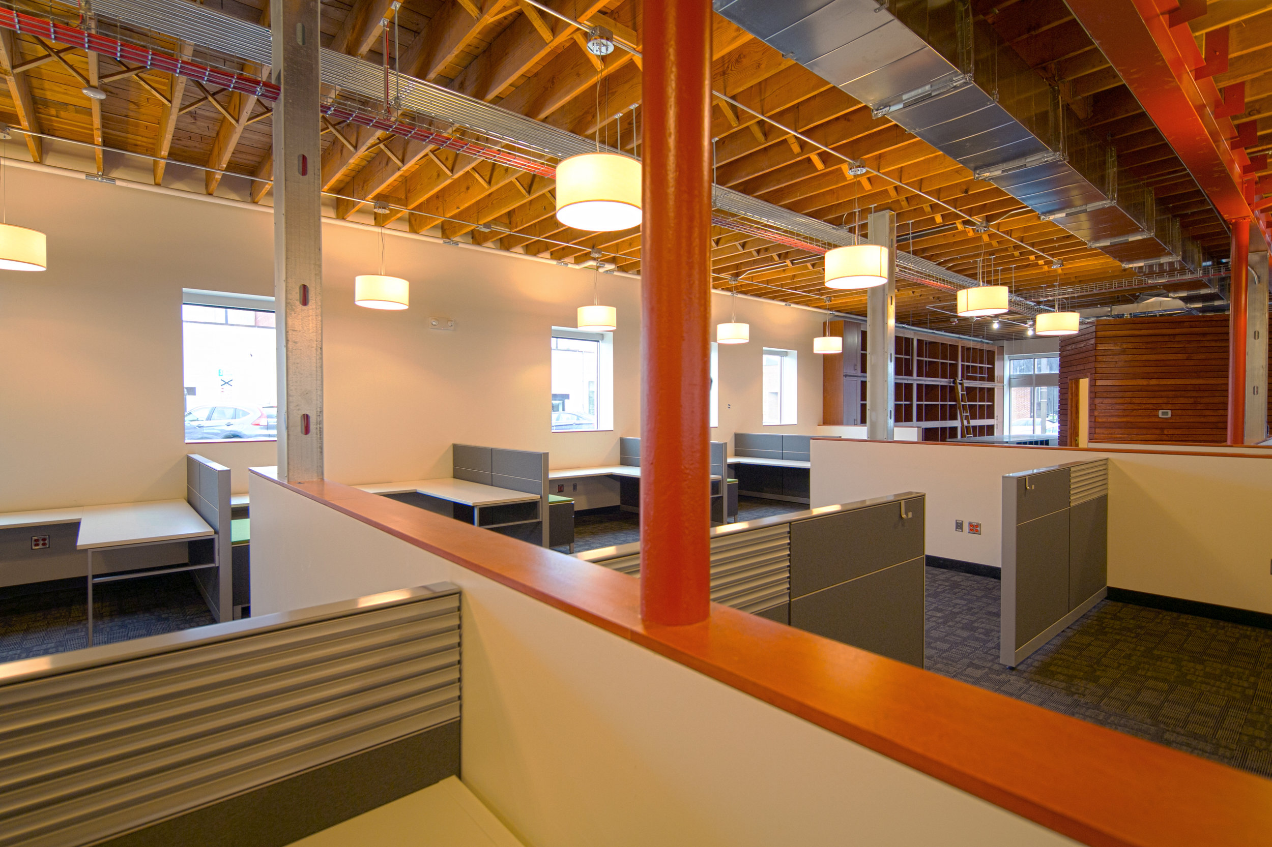 Wilkus Architects P.A. officially moved to downtown Hopkins, Minnesota in March of 2015. Formerly a Schneider Drugstore, the existing building offered a enough space for the firm to grow and expand their level of services. An open floor plan helps support their current staff, through new punched openings for natural light, high ceilings, exposed wood trusses and a variety of meeting spaces for small groups. In addition, two private conference rooms and extended sample library support day-to-day requirements for design.